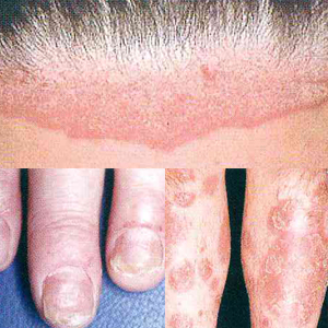 皮膚に赤い発疹ができ、ニキビのように盛り上がり大きくなっていきます。その後、銀白色の厚い皮膚となってフケのようにポロポロとはがれ落ちます。全身どこにでもできること可能性がありますが、比較的摩擦を受ける頭部や肘や膝、背中に多く見られます。大きさや数も人によって異なり、入浴や飲酒で身体が温まることでかゆみが発生しやすいです。男性に多く爪に異常が出てしまったり関節炎を伴うこともあります。